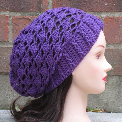 This pattern is for a feather-light, lacy beanie, featuring an elegant twisted cable brim and a beautiful, feminine shell mesh stitch pattern. This hat’s openwork style is perfect for the warmer months, while the snug, stylish band will still keep you cozy in the winter! The pattern comes with easy to follow step-by-step instructions and helpful, clear photos.