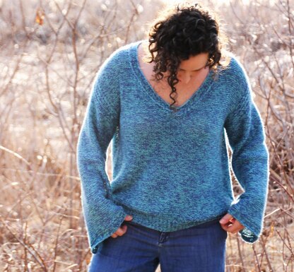 JC-Halcyon is knit flat in pieces from the bottom up, beginning with the back. Once the front is completed, the shoulders are created by short rows and seamed using the 3-needle bind off. The sleeves are then picked up along the armhole and knit straight through the cuff. (Alternate instructions for tapered sleeves are included.) The collar is created by picking up stitches on the wrong side of the fabric as opposed to the traditional right side, leaving the seam facing the right side of the fabric, a pretty little detail to coordinate with the rest of the design.