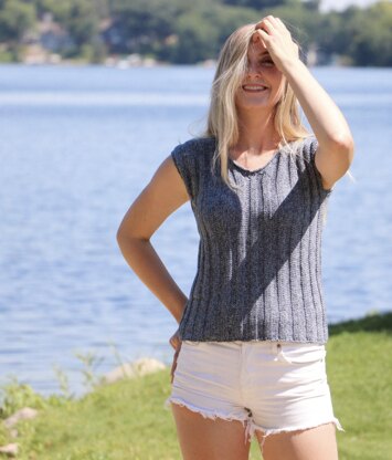This top alternates between stockinette and reverse stockinette stitch to create unique, textured stripes. Constructed horizontally to create vertical stripes, this top is universally flattering and is just what every woman's wardrobe needs!