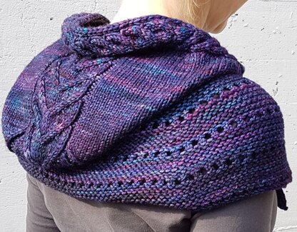 Construction: All parts of the hood and capelet are worked flat; clever shaping allows for a completely seamless construction achieved with increases, decreases and picked-up stitches.