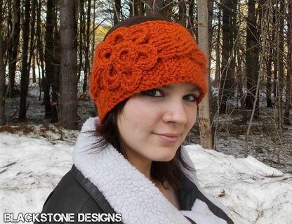 The Jenny Headwrap is a stylish winter accessory with simple basic cables and an oversized flower. Special stitching adds an extra fun texture that’s easy to create.