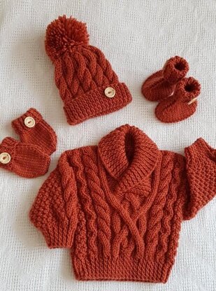 This pattern contains instructions for a Jacket and Traditional hat to fit 16″, 18″, 20″, 22″, 24", 26". 28" and 30" chest and is generous in size. I cannot stress enough to measure the child you are knitting for as all children are different. Go a size down for a more fitted look or extend arms and length for a taller child.