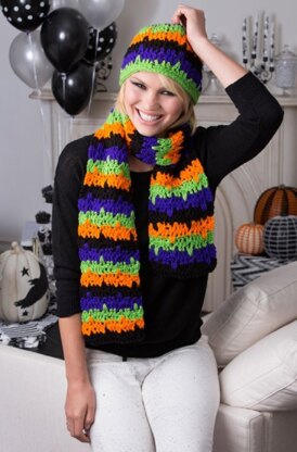 Jittery Stripes Hat & Scarf in Red Heart Super Saver Economy Solids - LW4454