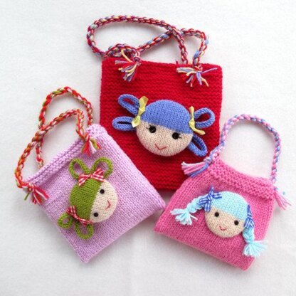 JOLLY DOLLY BAGS are decorated with smiling dolly faces. The bags are just the right size for little hands to holds. Youngsters will have great fun filling their bags with toys and if you’d like to make some tiny dolls to fit in the bags you’ll find a pattern for them in ‘Jenny and the Jolly Dollies’ available from my Etsy shop.