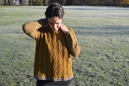 Joon is a comfortable pullover inspired by the funky-fun Joon Character from the Benny and Joon movie of the early 90’s. Knit in pieces and seamed; it combines texture and color for a unique fun design! This oversized, boxy drop shoulder sweater features an allover cable pattern on the front and back, striped sleeves, and ribbing on the edges. Have fun choosing colors to stripe or work it up in one solid color for a more classic look. Knit up in Brooklyn Tweed Loft, it is lightweight, warm, and a blast to knit and wear!
