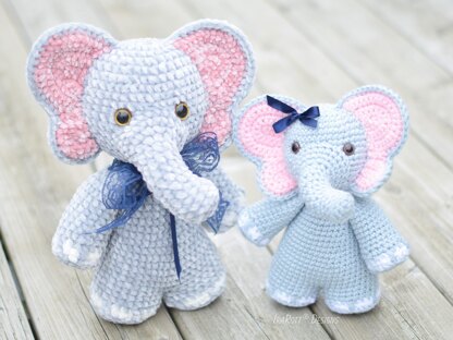 - NOTE: For Little Elephant use Bernat Velvet or Premier Parfait Yarn; Bulky weight (5). For Tiny Elephant use medium weight yarn (4).