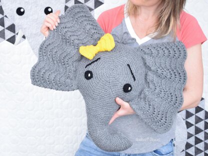 Josefina and Jeffery will be a perfect fit for an elephant themed nursery, child’s bedroom, or even your favorite couch. The pillow is knitted seamlessly in 1 piece; you will only have to sew the eyes, eyebrows, and bow. The pattern is written row-by-row, including photos, knitting diagrams, stitch abbreviations, and explanations for the required techniques.