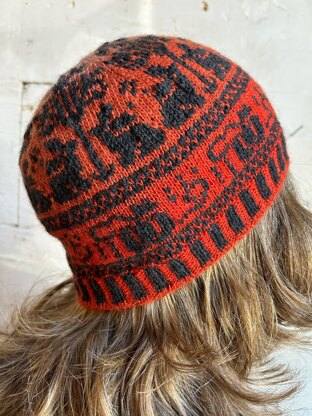 This is a pattern to make a Falloween themed slouchy beanie hat using the stranded colourwork technique.