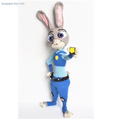 Judy Hopps Zootopia amigurumi crochet pattern is a 19-page document. Amigurumi toy Judy Hopps is 31 cm (12.2in) without ears :) Ears' length is 10 cm (3.9in). Amigurumi Judy Hopps is made from 100% cotton yarn, polyester and wire, forelegs and hind legs can move, you can bend and unbend bunny.
