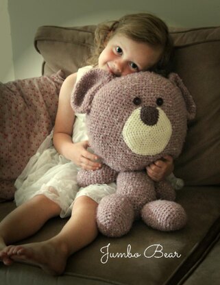 This cuddly bear makes an adorable, jumbo-size friend for any boy or girl...or even an adult! Works up quickly using bulky weight yarn.