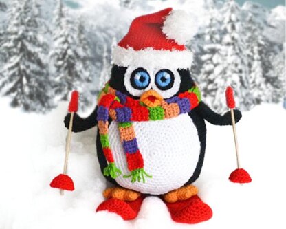 Jumbo Christmas Penguin Crochet Pattern - Large 40 cm Amigurumi Penguin with Hat, Scarf & Skis (PDF)