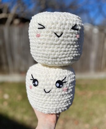 Adorable huggable sized marshmallows. These handmade plushies can be made in a variety of colors and flavors! This pattern is perfect for those who enjoy both crafting and a sweet treat. With easy-to-follow instructions. These plushies are perfect for gifting! If you're a fan of s'mores and could use a little extra comfort during times of stress or anxiety, these crocheted plushies are just what you need!