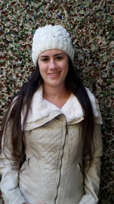 An easy cable and lace beanie that is perfect for beginners to experienced knitters. If you can do simple cables and yarn overs, this is the pattern for you. Knits up quickly for a last minute... night before gift. One size fits Teens to Ladies.