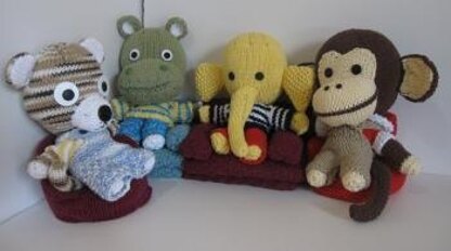 Knitkinz Jungle Animals are: Monkey, Elephants, Tiger and Hippo. Read more about them in knitvana website