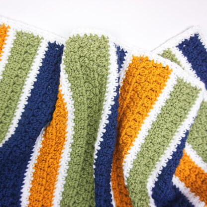 Filled to the brim with texture, the Jungle Stripes blanket mixes multiple stitches to give a beautiful finished make.