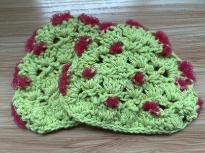 These work up quick as a poke and make great gifts! They are cute and fun to use, letting you tackle those stuck-on bits without having to hold an entire scrubby in your delicate crafty hands.
