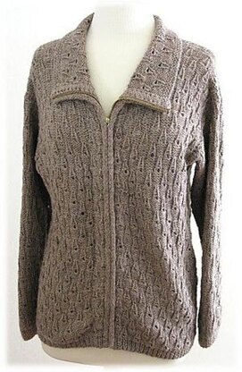 This is a jacket worked in the beautiful Eiffel Tower pattern. It has long sleeves with modified drop shoulders. It has a collar that follows the same pattern as the body of the jacket. The front is finished with a zipper that goes all the way to the edge of the collar. I have included instructions for installing the zipper.