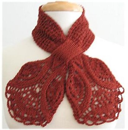 This is a beautiful short scarf. The two ends are worked in a gorgeous lace design then the keyholes are worked. The body of the scarf is in an easy lace pattern.