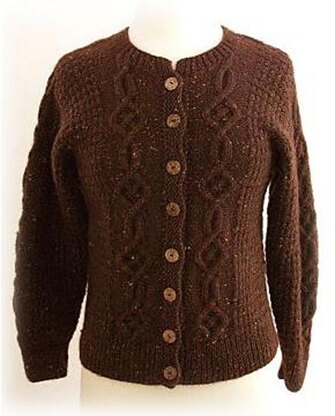 This beautiful cardigan is worked in a background of Broken Rib pattern with a lovely cable worked on both fronts and the sleeves. The cardigan has a crew neckline and modified drop shoulders.