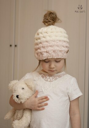 Ponytail hat knitting pattern, Girls hat knit pattern | KAIA bun hat