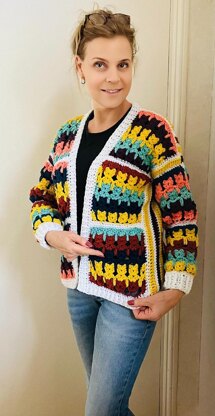 Ready for a happy and festive looking cardi? Get your hook H/5mm out, some Aran/ Medium worsted weight #4 and get started.