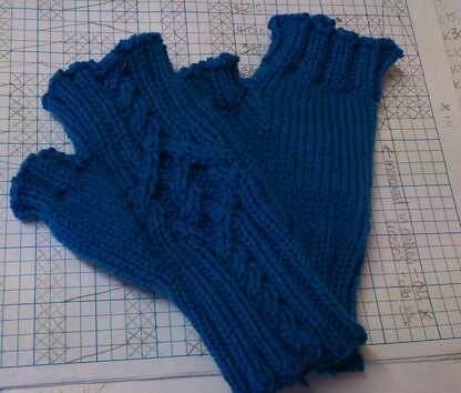 Simple ribbed cuff mitt with cable detail on the back of the hand and stocking stitch palm.