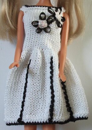 This pattern has knitting and crochet work. Black surface crochet which is explained in the pattern. Matching flower embellishments on bodice.