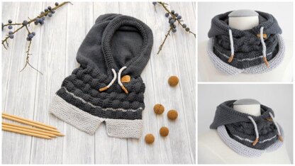 Sehr praktische, abnehmbare Kapuze. Sie schützt draußen vor Wind und Wetter und drinnen kann man sie einfach abziehen und hat trotzdem noch einen wunderschönen Schal.