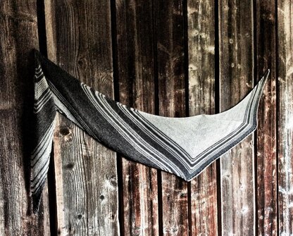 Karakri is a garter stitch shawl knitted first top down and then sideways. One part of the edge is embellished with beads.
