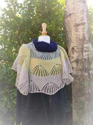 Karrusel is the Danish word for “Carousel”. The Karrusel shawl is a crescent symmetric shawl that will drape gracefully around the shoulders and keeps in place without a pin.