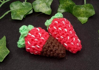 Fun & simple crochet pattern for cute Kawaii Strawberries for soft toy play, decor or keychain charms.