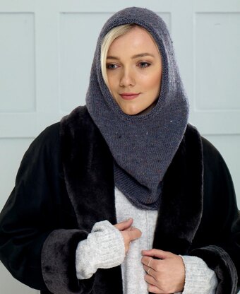 KAY is the ultimate cosy “topper” for winter! Not quite a balaclava, not quite a hat, and not quite a cowl, KAY is all three combined! Wear it up to keep your head and ears cosy. Push it down when it’s a little warmer. Tuck it into your winter coat, or let it sit neatly over a sweater or jacket. Whichever way you wear it, it’s bound to keep you cosy! Knitted mainly in the round, so there are no seams, the smooth stocking stitch shows off the tweedy yarn to perfection.
