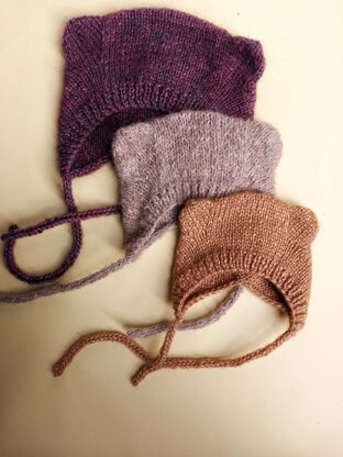 DescriptionThis bonnet is worked flat, starting with a 1x1 ribbed edge. The main body begins flat in stockinette stitch. Two ear sections are established with markers. Ears are shaped using increases. After the increase section, a decrease sequence gathers all stitches of each ear. The work is then joined to be knit in the round. The crown is shaped using decreases at three points. Ties worked as an I-Cord.