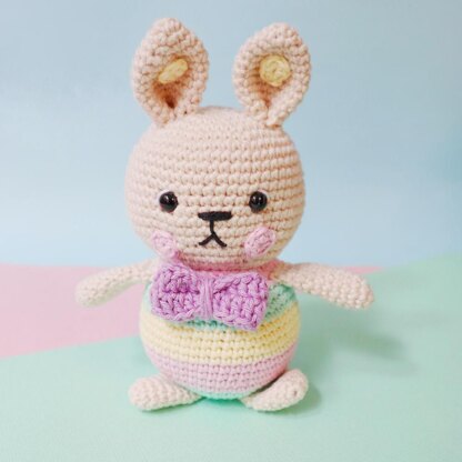 Keiko the Bunny is short, sweet and loves Easter. So much that for this year’s Easter egg hunt she is wearing an egg costume topped with a big lilac bow.