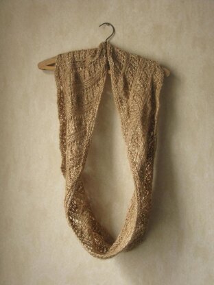 Yarn: Debbie Bliss Alpaca Silk Aran, 3 skeins = 195m in total. Needles: 6mm / US 10 60cm circular needle Gauge: 15 stitches and 20 rows = 4” in stocking stitch. Dimensions: 9” x 54” Extras: One stitch marker