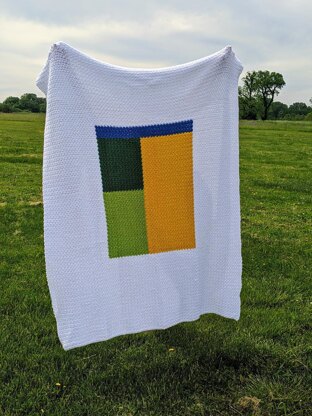 MATERIALS NEEDED: Size J/10/6mm crochet hook Worsted Weight yarn (#4) ~ 5 colors – 1 main color and 4 coordinating colors White – 6 skeins, Lime – 1 skein, Gold – 1 skein, Emerald – 1 skein, Royal Blue – 1 skein