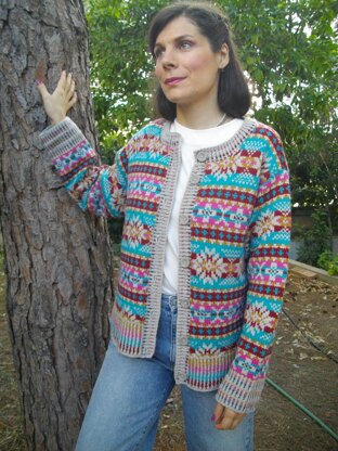 This gorgeous Fair Isle cardigan uses intricate color-work to create a striking effect.