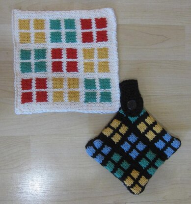 "36 Squares" Placemat and Pot Holder are based on knitvana designs for kGeometry - knitting Geometry.