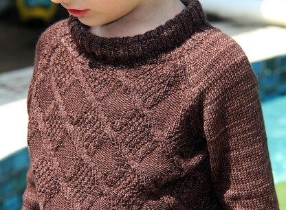 Boy’s sweater with texture pattern on the front, roll neck and raglan long sleeves.