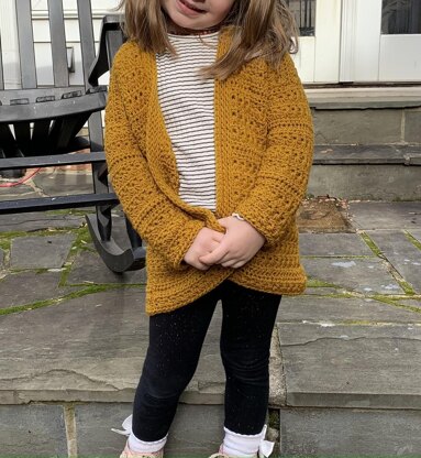 This long, relaxed cardigan is designed to fit toddlers and kids. Pattern provides instructions for eight different sizes 2T-5T, S-XL (kids). This cardigan is made using three panels seamed together. So perfect the pattern is perfect for a beginner garment.