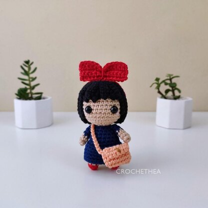 If crocheted with sport yarns and Tulip hook no. 2/0 (2 mm hook) Kiki amigurumi is about 9 cm (3.5 inches) tall.