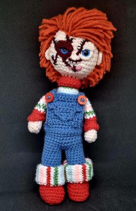 We would like to introduce to you 'Killer Doll' , he is part of 'The Teeny Weeny Collection', he is worked in basic stitches and rounds, is worked in DK (8PLY), is written in US terminology and stands at approximately 8" in height,
