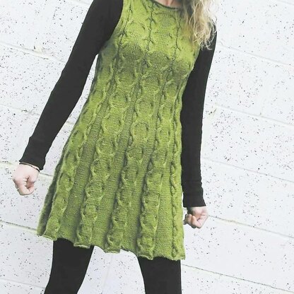 Kina is an A-line tunic in 8 sizes (XS/S/M/L/1X/2X/3X/4X), that features an hourglass cable coupled on a reverse stockinette background. The bottom edge, armhole edges, and neckline are left unfinished to retain the elementary lines. Kina is knit from the bottom up in pieces, with a flared hem and gradual decreases, offering a loose fit throughout the body that transitions to a fitted bust with slight negative ease. While the garment is constructed with simple lines, there is a luxurious, rich texture to the finished fabric, inspired by the undulating landscape of the Scottish Highlands.