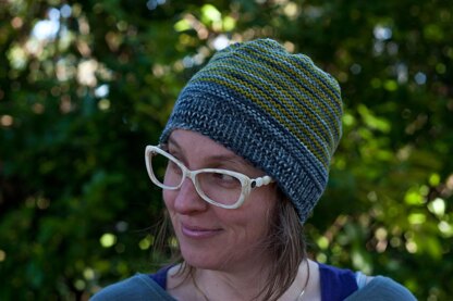 Finished measurements: Small (medium, large): 18 (20, 22)” circumference, 8.5 (9, 9.5)” from cuff to top of crown.