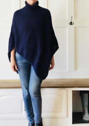 The Kinsey Poncho is made up of two rectangles knit flat and seamed together in such a way that the poncho falls effortlessly and slightly askew. The main body is knit in stockinette, with the exposed edges designed to use the natural curl of the stockinette instead of fighting it. The turtle neck is knit up separately in the round (pattern suggests just the right stretchy cast on and bind off) on smaller needles. If you don't like turtlenecks, you can simply leave it off and let the neck area roll naturally. This pattern is suitable for an adventurous beginner. Skills needed include knit, purl, knitting in the round, 3 needle bind off (I include youtube links for the cast on and bind off in the pattern).