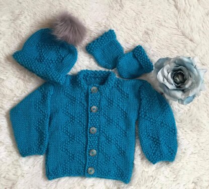 The pattern contains instructions for a Jacket and Traditional hat to fit 16″, 18″, 20″, 22″ and 24″ chest and the end product is larger as it is a jacket.