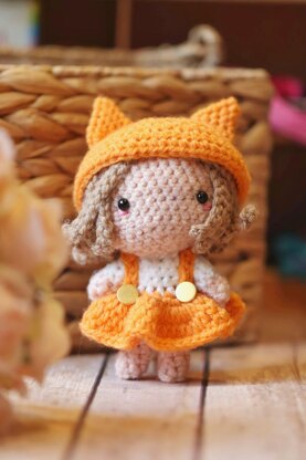 Kitsune the Fox Girl is an adorable miniature doll dressed like a fox. She’s perfect for gifting to children or as home decor. Basic stitches combined together make for a complex-looking but easy to make doll!