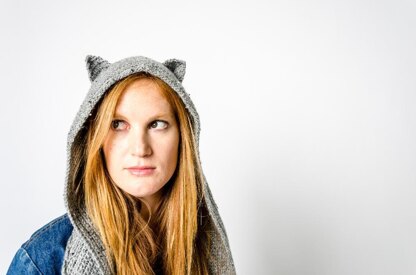 This is an original pattern for a super cute, kitten eared hood. Ideal in the winter as you can tuck the elegant ends into your coat collar for extra warmth, or totally cool to throw in your bag when you're off to a festival, for a bit of extra cosy after the suns set.