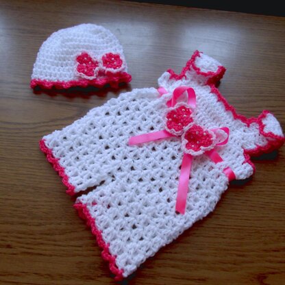 -DK yarn :white color 20-50 gr, light pink color 5g, hot pink 2-3 gr -tapestry needle , -light pink beads -hot pink satin ribbon