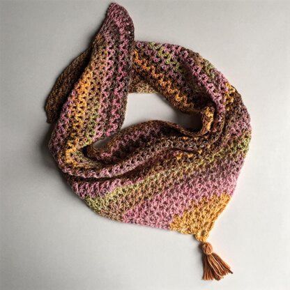 Zusammengefaltet ist das Tuch nicht größer als ein Apfel – ein zartes 50-Gramm-Leichtgewicht. Es passt in jede Tasche und ist der perfekte Begleiter, wenn’s abends kühler wird. Das Bandana wird einfach im Nacken geknotet, kann aus Woll- oder Baumwollgarn gehäkelt werden und ist auch für Kinder sehr gut geeignet. Es hat eine kleine Quaste als Eyecatcher. Natürlich kann man auch etwas anderes in den Ring einhängen - oder das Tüchlein pur lassen.